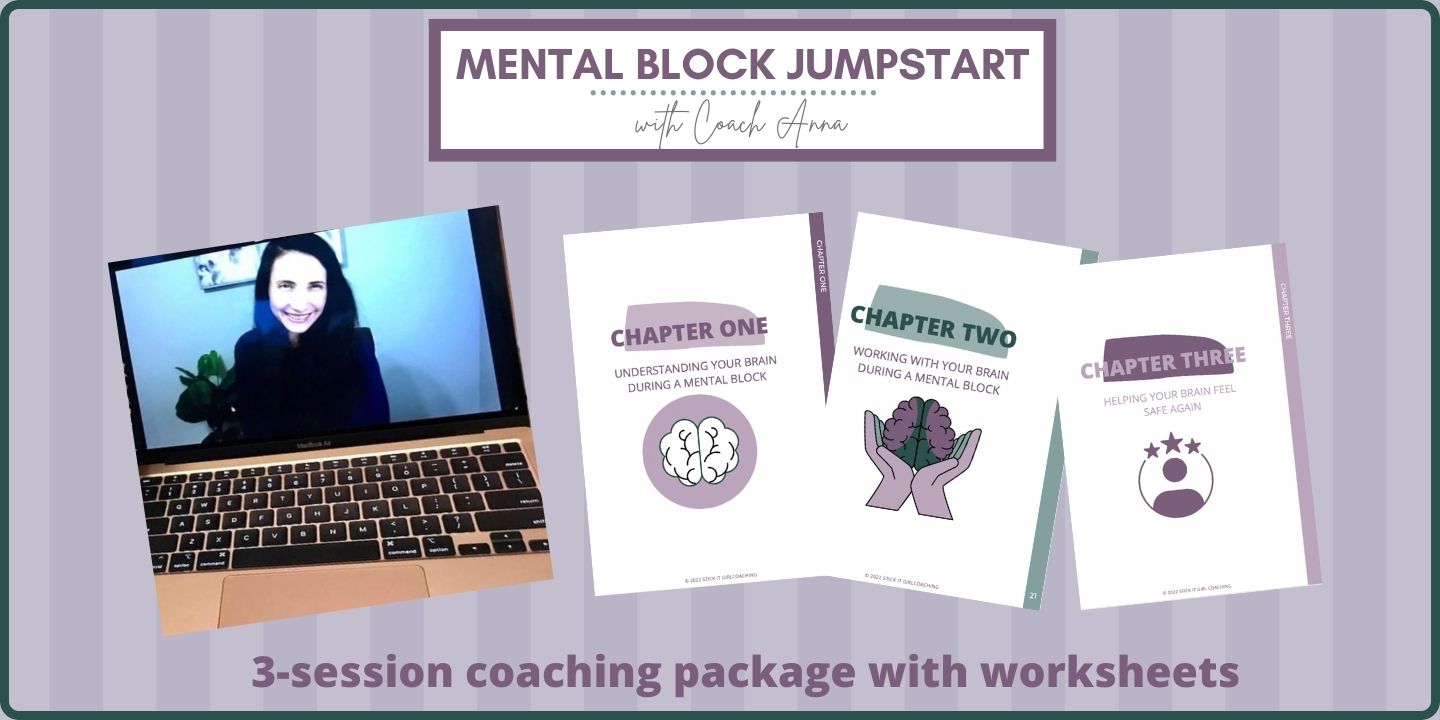 Go through the Mental Block Jumpstart with Coach Anna and join the Stick It Girl Academy monthly membership. It's time to take the right action!