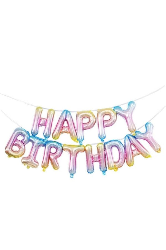 Happy Birthday Balloon Banner - Pastel Rainbow