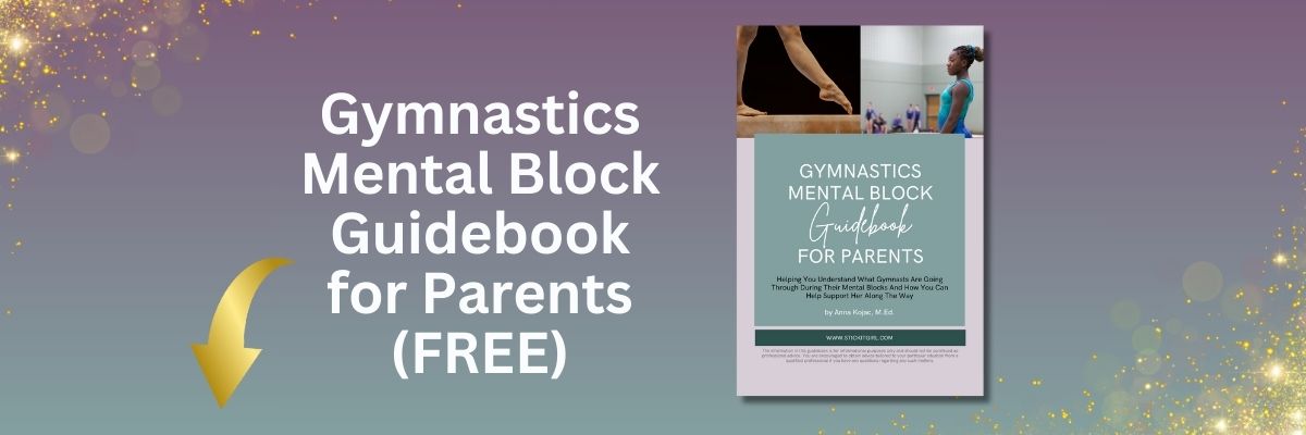If you haven't already, download the Gymnastics Mental Block Guidebook for Parents. This free resource is packed with information about mental blocks and can guide in the right direction if you have a gymnast with a mental block.